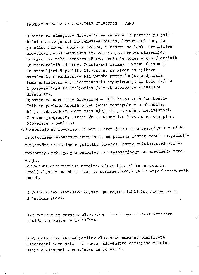 3. Če bo slovenski parlament preveč neodločen, mlačen in projugoslovansko usmerjen, bo Gibanje SAMO izvajalo pritisk nanj, organiziralo demonstracije, usmerjalo družbeno nezadovoljstvo in zahtevalo predčasne volitve.